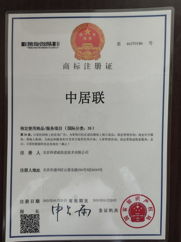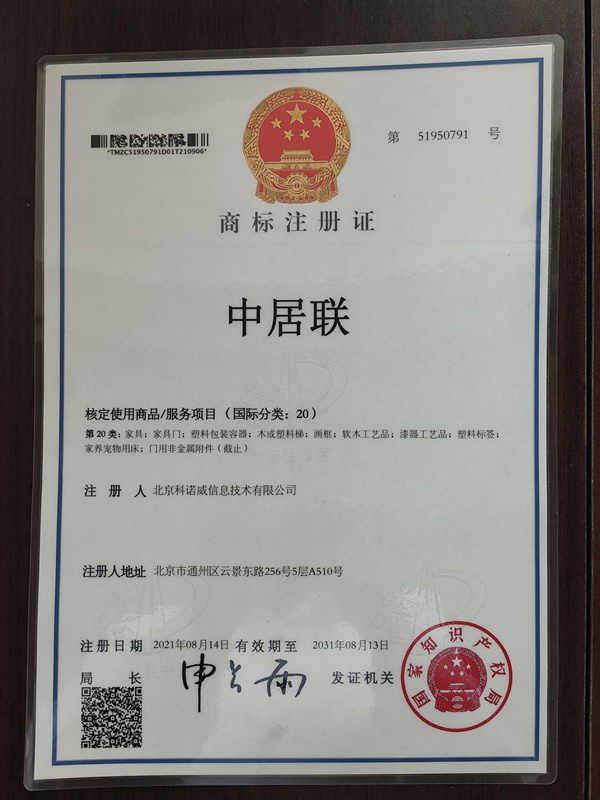 中居聯(lián),英文名 China Custom Home Alliance 【CCHA】,曾用名:中國定制家居聯(lián)盟。中居聯(lián)隸屬于北京科諾威信息技術(shù)有限公司,品牌發(fā)起于2009年,中居聯(lián)非常重視品牌保護(hù),旗下注冊商標(biāo)如下: