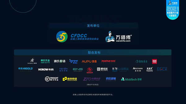 基于以上行業背景,萬師傅平臺《2021家居服務行業分析報告》于2022年4月9日正式發布。據悉,該報告由萬師傅平臺與全國工商聯家具裝飾業商會共同發布,慕思、林氏木業、源氏木語、愛果樂、奧普、盼盼、優梵藝術、原始原素、A家家居、悍高、希箭、亞太天能、ENS、玥瑪安防、便潔寶、心海伽藍、艾仕臣、普賽羅、BECK智能鎖、順豐快運、德邦快遞、中通快運、洞見研報、MobTech袤博等品牌聯合發布。