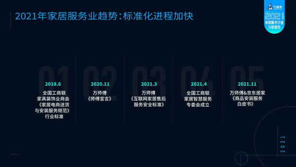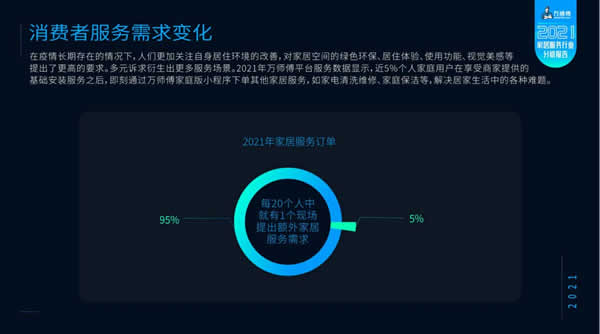 據了解,《2021年家居服務行業分析報告》通過萬師傅平臺獨家數據統計及市場調研分析生成,期望為家居行業轉型升級之路提供可靠參考。作為家居服務業領航者,萬師傅平臺自2016年以來持續輸出真實行業數據與優質調研成果,協同家居企業、物流公司等行業伙伴一起預見行業發展趨勢,把握數字經濟帶來的發展機遇,賦能中國家居行業轉型升級。