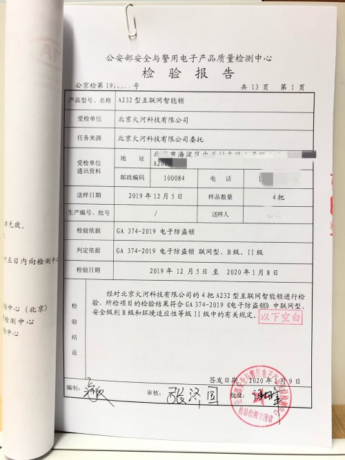 在智能門鎖行業(yè)內,火河科技的產品一直是高品質的代表。型號為A232的火河商用智能門鎖,是經過長時間研發(fā)打磨的首款基于NB-IoT技術的商用智能門鎖產品,2019年剛剛進行小范圍內測便受到業(yè)界高度關注。近日,該產品更是率先完成了公安部2019年最新頒布的權威標準《GA-374-2019 電子防盜鎖》認證,也就是業(yè)界俗稱的“GA374-2019認證”。