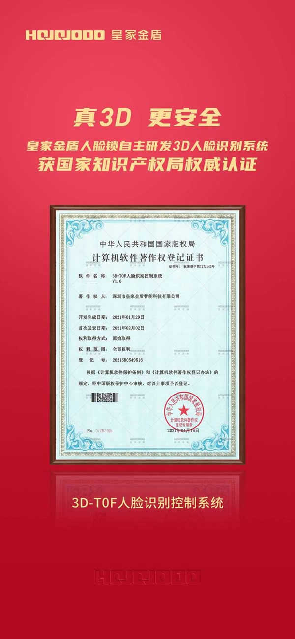 此次軟件著作權證書相繼獲取,標志著皇家金盾人臉鎖在軟件開發高新技術領域上邁上了一個新的臺階,在我司知識產權工作開展上具有里程碑的意義,意味著我司通過自主研發取得的獨立知識產權得到了權威的認可和肯定,提升了我司專業技術產品分銷的核心競爭力和行業地位。我司技術市場團隊及相關人員為此付出的努力,必將激勵我們繼續前行,百尺竿頭更進一步,為客戶提供更好的產品和服務!
