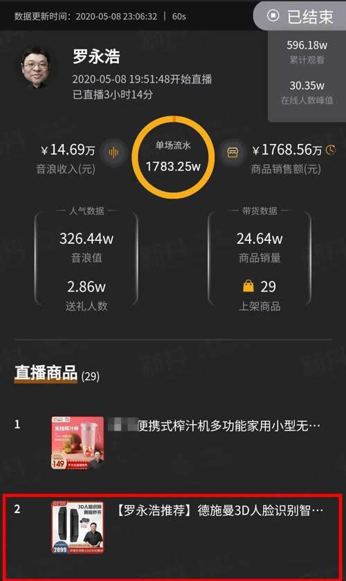 開場短短幾分鐘,羅永浩的直播間便沖上了抖音小時榜前位,延續了前幾場直播的超高人氣,而備受矚目的德施曼3D人臉智能鎖也以獨有的“刷臉”優勢快速售罄,累計觀看人數596w+,近千套被網友瘋搶,再次榮登智能鎖銷售額TOP1,位列老羅當日商品金額TOP2,再樹高端智能鎖直播帶貨標桿!