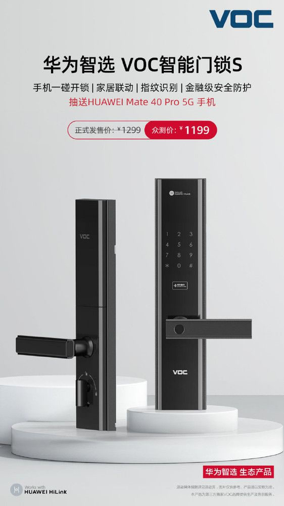 近日,VOC智能門鎖S在華為商城正式開啟眾測,正式發售價1299元,眾測價僅需1199元,參與眾測抽華為Mate40 Pro,好評送無線門鈴,4月20日之后陸續開始發貨,感興趣的小伙伴可以關注。