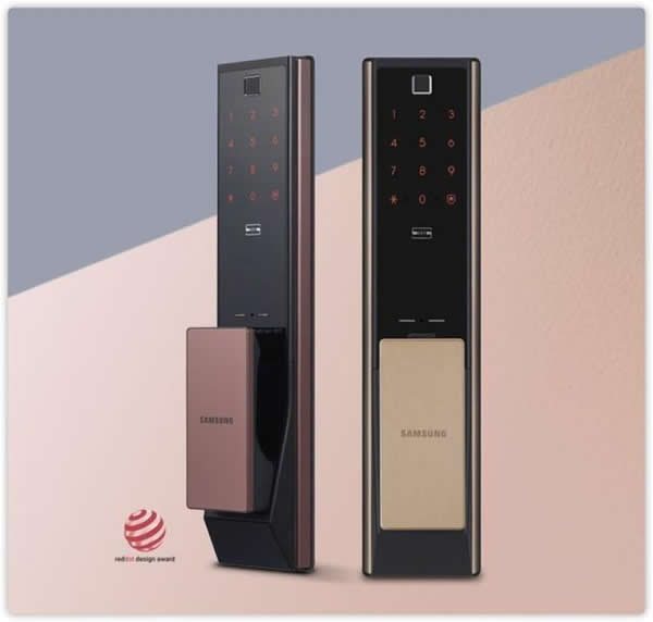 比如獲得德國紅點設計獎的三星DP738/DP739系列智能鎖。采用推拉式的人體工學設計、超薄的流線型機身、大尺寸觸摸屏,將極簡主義和現代科技進行融合,賦予了現代家居時尚、品質以及個性。