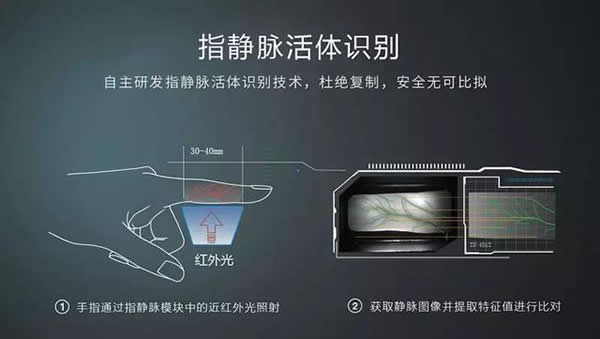 無法破解:靜脈血管隱藏于人體內(nèi)部,加上活體識別的特點,無法偽造破解。