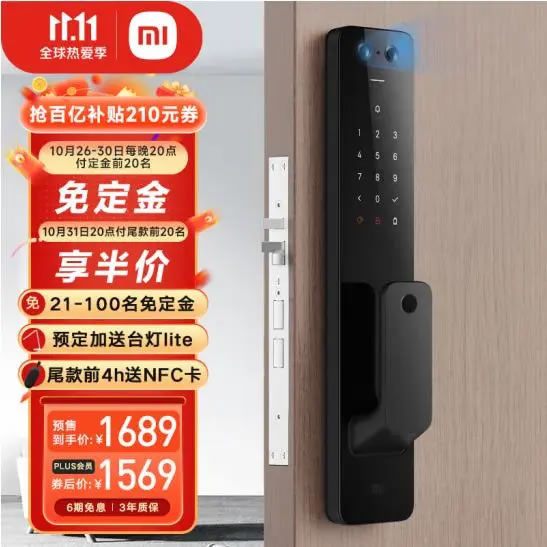 預售價2199元,定金100抵400,領取價格下方210元優惠券,在疊加權益卡499-40元,最終到手1649元包郵,尾款前200名加送小米智能攝像機2云臺版,尾款前4h加贈NFC卡。