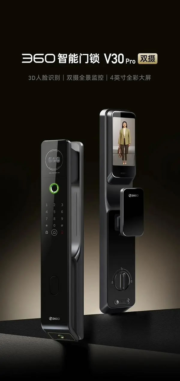 11月26日消息,360智能門鎖V30Pro現已上架天貓360官方旗艦店,將于11月27日0:00正式開售,首發到手價1699元。 這款門鎖支持3D人臉識別,提供門前+門下雙視角監控,同時匹配一塊4英寸全彩屏幕。其中,兩個攝像頭可動態捕捉人臉數據
